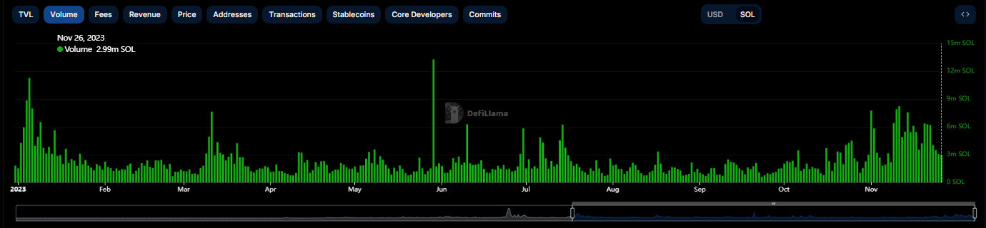 Source: https://defillama.com/chain/Solana?volume=true&tvl=false¤cy=USD