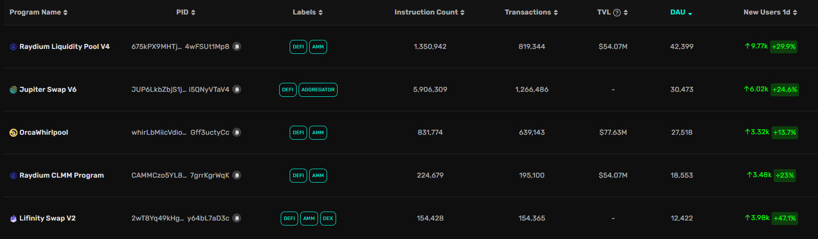 Source: https://alpha.vybenetwork.com/programs?order=dau&desc=true